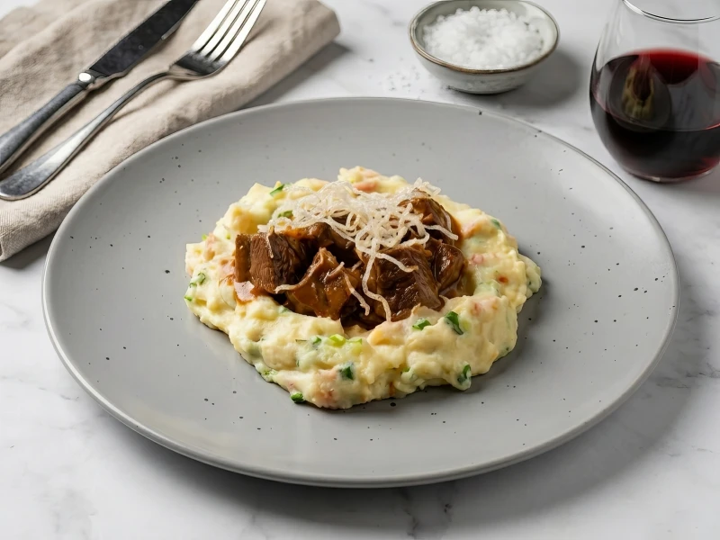 Бычьи щечки с картофелем пармантье и беконом